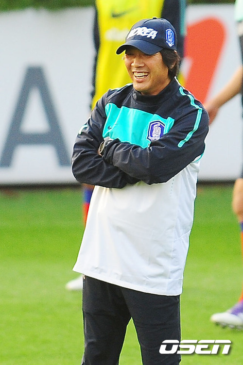 조광래 감독이 이끄는 월드컵 축구대표팀이 7일 열릴 폴란드와의 친선경기와 11일 월드컵 아시아지역 3차예선 아랍에미리트연합(UAE)과의 경기를 앞두고 파주NFC(국가대표팀 트레이닝센터)에서 5일 오후 훈련 중 조광래 감독이 환하게 미소짓고 있다. 조광래 감독은 이번 소집 명단에서 다시 한 번 변화를 꾀했다. 논란 속에서 이동국을 추가발탁하고 서정진 이승기 이현승 등을 새롭게 발굴한 것. 여기에 곽태휘와 조병국을 발탁해 수비의 안정을 꾀했다. 잦은 부상으로 대표팀과 인연이 멀어졌던 손흥민의 복귀도 눈에 띈다. 발목을 다쳐 지난 3차 예선 1~2차전에 합류하지 못했던 손흥민은 최근 부상에서 회복하며 다시 조광래 감독의 부름을 받았다. 한편 성남 복귀전에서 부상을 당한 김정우는 이번 소집에서 제외됐다. 조광래호는 생각의 속도와 패싱 위주의 전술 구사, 압박 등 기존의 틀은 유지할 예정이다. 다만 이동국의 추가 발탁으로 공격 옵션이 다양해졌다. 상황에 따라 원톱에서 투톱으로 변화를 줄 수 있다. 조 감독은 선수들의 컨디션을 종합적으로 점검한 후 시스템 변화를 집중 연마할 예정이다. 한편, 4일 조광래 감독의 A대표팀과 홍명보 감독의 올림픽대표팀이 7일 평가전에 대비, 4일 파주NFC(국가대표팀 트레이닝센터)에 최초로 함께 소집됐다. A대표팀과 올림픽대표팀이 같은 날, 같은 장소에서 릴레이 매치를 벌이는 것은 물론 합숙을 하는 것도 이번이 처음. 조광래호는 7일 오후 8시 서울월드컵경기장에서 월드컵 첫 승 제물 폴란드와 친선경기를 벌인다. 홍명보호는 이에 앞서 오후 5시30분부터 우즈베키스탄과 일전을 치르게 된다. / rumi@osen.co.kr