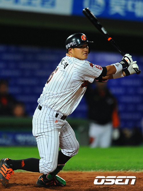 5일 오후 부산 사직구장에서 열린 '2011 롯데카드 프로야구' 롯데 자이언츠와 한화 이글스의 경기 8회말 1사 만루 상황 롯데 손용석이 역전 3타점 적시타를 날리고 있다. 플레이오프 직행을 확정한 롯데에 비해 한화는 LG,두산과 함께 5위 자리 다툼으로 물러설 수 없는 입장이다. 이날 경기에서 롯데는 사도스키를, 한화는 양훈을 선발투수로 내세운다./ soul1014@osen.co.kr
