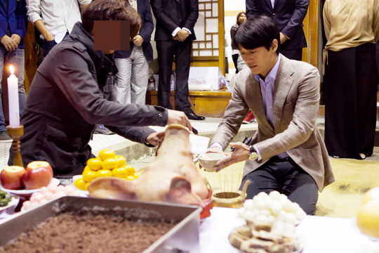 SBS 새 월화드라마 ‘천일의 약속’의 고사 현장이 공개됐다. 17일 첫 방송을 앞두고 있는 '천일의 약속'(김수현 극본, 정을영 연출)의 제작진과 출연진이 모여 드라마의 성공과 촬영 중 무사고를 기원하는 고사를 지냈다. 지난 5일 경기도 파주에 위치한 드라마 세트장에서 진행된 이날 고사 현장에는 김래원, 이상우, 정유미, 김해숙, 알렉스, 박유환 등의 출연진을 비롯해 ‘천일의 약속'의 연출을 맡은 정을영 PD 및 현장스태프, 제작사 관계자 등이 참여했다. 배우 대표로 술을 받아 고사상에 올린 후 정성스레 절을 올린 김래원은 "잘 부탁 드립니다! 항상 지금처럼 즐거운 마음으로 최선을 다하겠습니다! '천일의 약속' 대박!"이라고 외치는 등 열의에 가득 찬 모습을 보였다. 참석한 배우들 모두 한 마음 한 뜻을 모아 드라마의 성공을 기원했다. 또 고사를 마무리 지은 배우들과 제작진들은 서로를 향해 박수를 보내며 "천일의 약속! 파이팅!” “시청률 대박!” 등을 외치며 분위기를 고조시키는 등 화기애애한 분위기를 자아냈다. 한편, '천일의 약속'은 '무사 백동수' 후속으로 17일 첫 방송된다. happy@osen.co.kr [사진](주)예인문화 제공.
