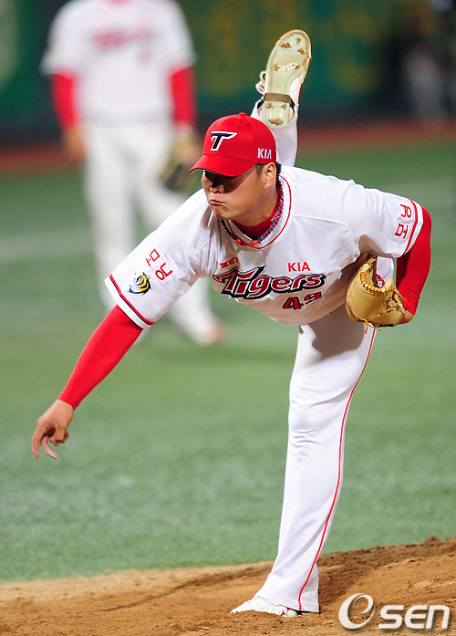"직구가 좋아졌다". 준플레이오프에서 KIA 우완투수 김진우(28)가 한기주와 임무를 바꿔 소방수로 나선다. 4년만에 1군에 복귀했고 어깨피로, 발바닥 부상으로 다시 80일간의 공백기를 가진 그를 갑자기 소방수로 기용하는 이유는 궁금증을 불러일으켰다. 이유는 직구였다. 그는 임의탈퇴 이전부터 명품커브를 갖고 있었으나 직구의 구위가 현격히 떨어졌다. 무엇보다 직구의 제구력이 제대로 듣지 않았다. 직구가 자연 슬라이더가 되는 등 고질적인 문제가 있었다. 실제로 복귀했지만 비슷한 모습이었다. 다시 2군으로 내려간 이유였다. 그러나 돌아온 김진우는 조금 달라졌다. 이강철 투수코치는 "직구가 좋아졌다. 예전 진우의 투구동작을 보면 어깨-팔꿈치-손으로 이어지는 단계별 투구가 되지 않았다. 팔이 먼저 나가는 습관 때문에 제구력이 좋지 않았다. 지금은 조금씩 잡아가면서 직구의 제구력이 나아지고 있다고 설명했다. 그럼에도 김진우의 구속은 140km를 조금 넘을 뿐이다. 예전에는 150km를 가볍게 던졌지만 아직은 직구 스피드를 찾지 못했다. 하지만 이강철 코치는 "직구의 볼끝이 좋다. 큰 문제는 없을 것이다. 준플레이오프에서도 직구로 스트라이크를 잡아야 한다. 볼카운트를 유리하게 끌고 가면 커브와 체인지업이 좋아 쉽게 당하지 않을 것이다"고 말했다. 김진우의 소방수 생활은 단지 이번만은 아닐 듯 하다. 어쩌면 포스트시즌은 내년을 위한 첫 걸음이나 다름없다. 내년 한기주가 선발로 돌아선다면 남아있는 소방수는 새로운 인물이 필요하다. 트레이드로 소방수를 데려오기 힘들다. 현재로서는 김진우가 가장 적격인 셈이다. 개인적으로 김진우는 가을의 아픔을 갖고 있다. 신인시절인 2002년 소방수로 나선 적이 있었다. LG와의 플레이오프에서 3경기에 나섰지만 1패를 안았고 방어율은 19.29를 마크했다. 모두 4차례 포스트시즌에 나섰지만 승리 또는 세이브가 없다. 이번이 만회할 수 있을 지 주목된다. sunny@osen.co.kr
