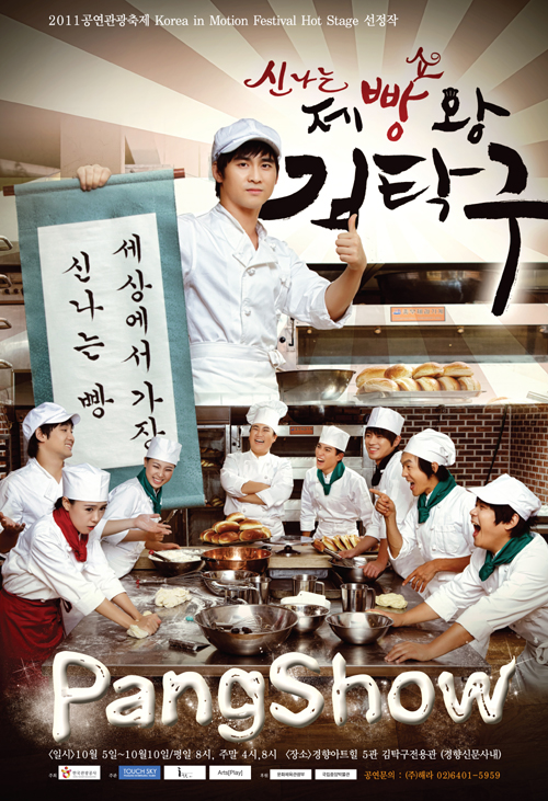 국민 드라마 '제빵왕 김탁구'가 세미 넌버벌 창작 뮤지컬 공연 ‘PANG SHOW’로 거듭난다. 우리 일상의 평범한 먹거리 빵은 대한민국에서 2010년 최고시청률 50.8%의 인기 국민 드라마가 되고, 2011년에는 신나는 공연이 되는 변신에 변신을 거듭하고 있다. 드라마 공연 기획제작사 터치스카이(대표 박인택)가 드라마 '제빵왕 김탁구'를 모티브로 제작한 ‘제빵왕 김탁구, 신나는 빵 쇼’ 창작 공연이 5일부터 10일까지 서울에서 열리는 Korea in Motion 페스티벌의 Hot Stage 초청 작품으로 첫 선을 보인다. Korea in Motion 페스티벌은 문화체육관광부, 한국관광공사, 예술경영지원센터의 후원으로 열리며, Hot stage 초청 공연은 새롭게 만들어지는 수 많은 국내 공연 가운데 기대가 되는 작품을 엄선하여 이번 행사기간에 선을 보이도록 한 작품으로 3개작이 선정되었다. ‘제빵왕 김탁구 신나는 빵 쇼’는 웃음과 재미가 팡팡 터지는 신나는 빵 공연이 되라는 의미에서 PANG SHOW란 이름을 얻었다. 드라마 '제빵왕 김탁구'의 무대인 ‘팔봉제빵집’을 주무대로 제빵사들은 ‘먹으면 저절로 즐겁고 비밀의 신나는 빵’을 만들기 위하여 음악, 댄스, 노래, 마술, 저글링, 놀이, 코믹쇼, 타악연주 등 신나는 공연을 다양하게 펼쳐 보인다. 공연을 관람하는 동안 관객들은 고소한 빵 굽는 향기를 느낄 수 있고, 공연이 끝나갈 무렵 배우들이 나눠주는 따뜻한 빵을 직접 시식하면서 공연 배우들과 기념사진도 촬영하고 담소를 나누는 색다른 공연 체험을 하게 된다. 서울 중구 정동 경향아트힐 극장 5관을 전용관으로 하는 ‘PANG SHOW - 제빵왕 김탁구 신나는 빵쇼’는 난타, 점프, 환타스틱과 같은 한국을 대표하는 공연이 될 것으로 벌써부터 많은 팬들의 관심과 기대를 모으고 있다. TV를 통한 드라마 시청만으로는 조금 아쉬운 특별한 체험을 제공하는 공연은 또 하나의 새로운 ‘한국의 재미’가 될 것이다. 10월 코인모(Korea in Motion Festival) 행사를 마치면 오는 11.15일부터 상설 공연으로 운영될 예정이며, '제빵왕 김탁구'를 사랑한 국내 시청자는 물론 한류를 좋아하는 해외 관광객들을 맞이하게 된다. issue@osen.co.kr [사진] ZOOM 제공