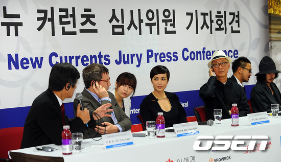 7일 오전 부산 해운대 BIFFHILL에서 진행된 제16회 부산국제영화제 뉴커런츠 심사위원 기자회견에서 이용관 진행위원장이 지앙 웬리에게 질문을 하고 있다. 3만 달러의 상금을 놓고 모두 15개국 13편의 작품이 출품된 뉴커런츠 부문 심사위원장에는 홍콩의 거장인 욘판 감독과 일본 배우 오다기리 죠가 선정돼 이날 기자회견에 참석했다. 한편 아시아 최대 영화제로 떠오른 부산국제영화제는 지난 6일 부산 영화의전당 야외극장에서 화려한 개막식을 시작으로 9일 간의 대장정을 돌입했다./ soul1014@osen.co.kr