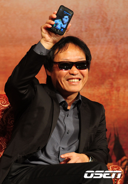 7일 오후 부산 해운대 그랜드호텔 그랜드볼룸에서 열린 영화 '양귀비' 제작보고회에서 곽재용 감독이 휴대폰 바탕화면에 판빙빙의 사진을 보여주며 즐거워하고 있다. 판빙빙 왕리훙 온주완 등이 출연하는 '양귀비'(곽재용 감독)는 중국 당나라 현종 시대 절세 미녀였던 양귀비의 일대기를 다루는 영화로 양귀비와 당명황의 사랑으로 전개되는 일련의 전쟁과 궁궐의 음모를 다룬다. /jpnews@osen.co.kr