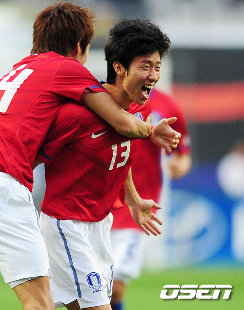 홍명보 감독이 이끄는 올림픽 축구대표팀이 7일 오후 서울월드컵경기장에서 우즈베키스탄과의 친선 경기를 가졌다. 전반 3분 한국 김태환이 선취골에 성공한 후 기뻐하고 있다. 한국과 마찬가지로 올림픽 아시아 최종 예선 1차전서 승리를 거둔 우즈베키스탄은 국가대표로 발탁된 1명을 제외한 정예 선수들이 출전한다. 국가대표팀에 중복 차출돼 선수들의 공백이 생기면서 이번 올림픽 대표팀에는 20세 이하(U-20) 콜롬비아 월드컵서 활약했던 선수들이 그 자리를 대신했다. 기존의 장현수, 백성동 이외에 황도연, 김영욱, 김경중이 새롭게 이름을 올렸다. 홍명보호는 내달 23일과 27일 카타르, 사우디아라비아와의 최종예선 2,3차전을 앞두고 이번 우즈베키스탄과의 친선 경기를 통해 변수에 대한 적응력을 키울 계획이다. 이 날 A대표팀과 올림픽대표팀이 최초로 같은 날, 같은 장소에서 릴레이 매치를 벌인다. / rumi@osen.co.kr
