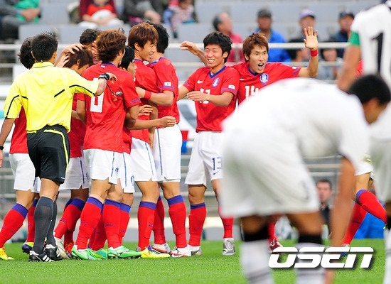 [OSEN=서울월드컵경기장 ,백승철 인턴기자] 홍명보 감독이 이끄는 올림픽 축구대표팀이 7일 오후 서울월드컵경기장에서 우즈베키스탄과의 친선 경기를 가졌다. 전반 한국 김태환이 첫 골을 넣은후 선수들이 기뻐하고 있다. 한국과 마찬가지로 올림픽 아시아 최종 예선 1차전서 승리를 거둔 우즈베키스탄은 국가대표로 발탁된 1명을 제외한 정예 선수들이 출전한다. 국가대표팀에 중복 차출돼 선수들의 공백이 생기면서 이번 올림픽 대표팀에는 20세 이하(U-20) 콜롬비아 월드컵서 활약했던 선수들이 그 자리를 대신했다. 기존의 장현수, 백성동 이외에 황도연, 김영욱, 김경중이 새롭게 이름을 올렸다. 홍명보호는 내달 23일과 27일 카타르, 사우디아라비아와의 최종예선 2,3차전을 앞두고 이번 우즈베키스탄과의 친선 경기를 통해 변수에 대한 적응력을 키울 계획이다. 이 날 A대표팀과 올림픽대표팀이 최초로 같은 날, 같은 장소에서 릴레이 매치를 벌인다. / baik@osen.co.kr