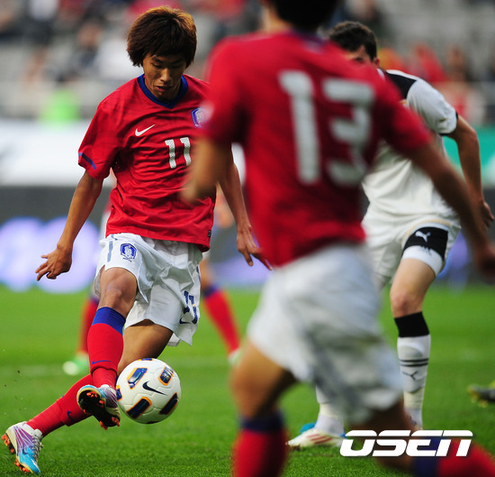 홍명보 감독이 이끄는 올림픽 축구대표팀이 7일 오후 서울월드컵경기장에서 우즈베키스탄과의 친선 경기를 가졌다. 전반 한국 윤일록이 팀 두번째골을 성공시키고 있다. 한국과 마찬가지로 올림픽 아시아 최종 예선 1차전서 승리를 거둔 우즈베키스탄은 국가대표로 발탁된 1명을 제외한 정예 선수들이 출전한다. 국가대표팀에 중복 차출돼 선수들의 공백이 생기면서 이번 올림픽 대표팀에는 20세 이하(U-20) 콜롬비아 월드컵서 활약했던 선수들이 그 자리를 대신했다. 기존의 장현수, 백성동 이외에 황도연, 김영욱, 김경중이 새롭게 이름을 올렸다. 홍명보호는 내달 23일과 27일 카타르, 사우디아라비아와의 최종예선 2,3차전을 앞두고 이번 우즈베키스탄과의 친선 경기를 통해 변수에 대한 적응력을 키울 계획이다. 이 날 A대표팀과 올림픽대표팀이 최초로 같은 날, 같은 장소에서 릴레이 매치를 벌인다. / rumi@osen.co.kr