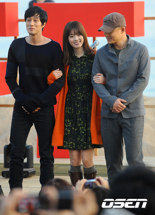7일 오후 부산 해운대 피프빌리지에서 열린 부산 국제영화제 개막작 영화 '오직 그대만' 야외 무대인사에서 배우 소지섭과 한효주, 송일곤 감독이 포즈를 취하고 있다. 영화 '오직 그대만'은 영 전직 복서 '철민'(소지섭 분)과 사고로 시력을 잃어가는 '정화'(한효주 분)가 만나 운명을 건 사랑을 시작하는 이야기로 송일곤 감독이 메가폰을 잡은 작품이다. 한편 아시아 최대 영화제로 떠오른 부산국제영화제는 지난 6일 부산 영화의전당 야외극장에서 화려한 개막식을 시작으로 9일 간의 대장정을 돌입했다./ soul1014@osen.co.kr./ soul1014@osen.co.kr