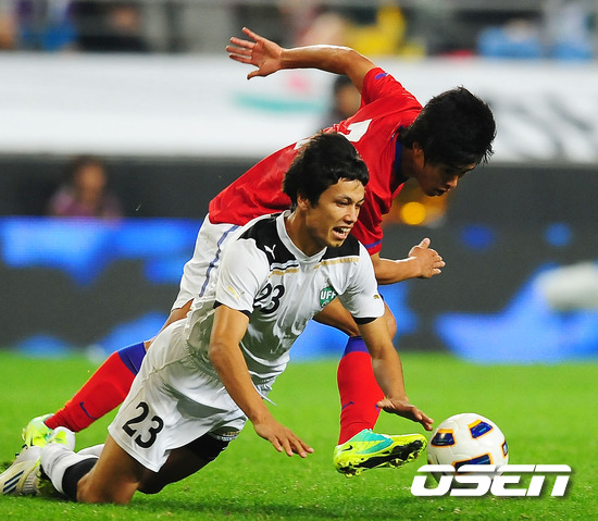 홍명보 감독이 이끄는 올림픽 축구대표팀이 7일 오후 서울월드컵경기장에서 우즈베키스탄과의 친선 경기를 가졌다. 후반 한국 백성동이 돌파를 시도하고 있다. 한국과 마찬가지로 올림픽 아시아 최종 예선 1차전서 승리를 거둔 우즈베키스탄은 국가대표로 발탁된 1명을 제외한 정예 선수들이 출전한다. 국가대표팀에 중복 차출돼 선수들의 공백이 생기면서 이번 올림픽 대표팀에는 20세 이하(U-20) 콜롬비아 월드컵서 활약했던 선수들이 그 자리를 대신했다. 기존의 장현수, 백성동 이외에 황도연, 김영욱, 김경중이 새롭게 이름을 올렸다. 홍명보호는 내달 23일과 27일 카타르, 사우디아라비아와의 최종예선 2,3차전을 앞두고 이번 우즈베키스탄과의 친선 경기를 통해 변수에 대한 적응력을 키울 계획이다. 이 날 A대표팀과 올림픽대표팀이 최초로 같은 날, 같은 장소에서 릴레이 매치를 벌인다. / rumi@osen.co.kr