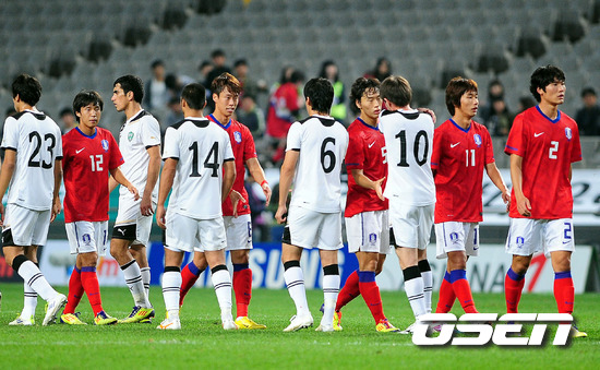[OSEN=서울월드컵경기장 ,백승철 인턴기자] 홍명보 감독이 이끄는 올림픽 축구대표팀이 7일 오후 서울월드컵경기장에서 우즈베키스탄과의 친선 경기에서 홍명보호는 1골 1도움을 기록한 김태환, 박용지, 윤일록의 활약에 힘입어 5-1 대승을 거뒀다. 경기를 마치고 선수들이 악수를 나누고 있다. 이로써 올림픽 대표팀은 최근 4경기서 3승 1무를 기록하며 다가오는 2012년 런던 올림픽 최종 예선의 전망을 밝게 했다. 올림픽 대표팀은 다음달 23일 카타르(원정), 27일 사우디아라비아(홈)와 올림픽 최종 예선 경기를 갖는다. / baik@osen.co.kr