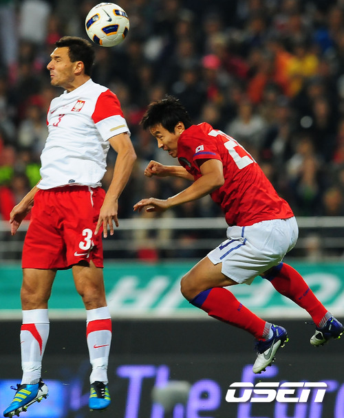 조광래 감독이 이끄는 월드컵 축구대표팀이 7일 오후 서울월드컵경기장에서 폴란드와의 친선 경기를 가졌다. 전반 이동국이 문전에서 뛰어오르고 있다. 조광래 감독은 이번 소집 명단에서 다시 한 번 변화를 꾀했다. 논란 속에서 이동국을 추가발탁하고 서정진 이승기 이현승 등을 새롭게 발굴한 것. 여기에 곽태휘와 조병국을 발탁해 수비의 안정을 꾀했다. 잦은 부상으로 대표팀과 인연이 멀어졌던 손흥민의 복귀도 눈에 띈다. 발목을 다쳐 지난 3차 예선 1~2차전에 합류하지 못했던 손흥민은 최근 부상에서 회복하며 다시 조광래 감독의 부름을 받았다. 한편 성남 복귀전에서 부상을 당한 김정우는 제외됐다. 전날 열린 기자회견에서 조광래 감독은 원톱 공격수로 이동국을 좌우 측면에 지동원(선덜랜드)와 박주영(아스날)을 기용하겠다고 말했다. 이들의 포지션 변화도 고무적이다. 최전방에서 활약하며 움직임을 보였던 선수들에게 새로운 기회를 주겠다는 의미다. 조광래호는 오는 11일 월드컵 아시아지역 3차예선 아랍에미리트연합(UAE)과의 경기를 앞두고 최고참 이동국의 존재는 대표팀의 분위기를 바꿀 수 있을지 귀추가 주목된다. / rumi@osen.co.kr