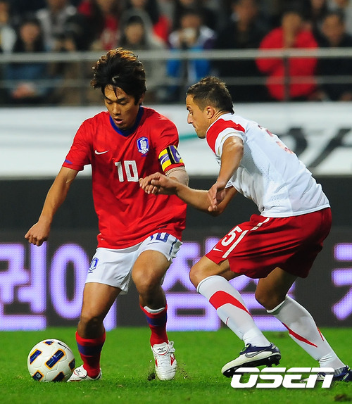 조광래 감독이 이끄는 월드컵 축구대표팀이 7일 오후 서울월드컵경기장에서 폴란드와의 친선 경기를 가졌다. 전반 박주영이 돌파를 시도하고 있다. 조광래 감독은 이번 소집 명단에서 다시 한 번 변화를 꾀했다. 논란 속에서 이동국을 추가발탁하고 서정진 이승기 이현승 등을 새롭게 발굴한 것. 여기에 곽태휘와 조병국을 발탁해 수비의 안정을 꾀했다. 잦은 부상으로 대표팀과 인연이 멀어졌던 손흥민의 복귀도 눈에 띈다. 발목을 다쳐 지난 3차 예선 1~2차전에 합류하지 못했던 손흥민은 최근 부상에서 회복하며 다시 조광래 감독의 부름을 받았다. 한편 성남 복귀전에서 부상을 당한 김정우는 제외됐다. 전날 열린 기자회견에서 조광래 감독은 원톱 공격수로 이동국을 좌우 측면에 지동원(선덜랜드)와 박주영(아스날)을 기용하겠다고 말했다. 이들의 포지션 변화도 고무적이다. 최전방에서 활약하며 움직임을 보였던 선수들에게 새로운 기회를 주겠다는 의미다. 조광래호는 오는 11일 월드컵 아시아지역 3차예선 아랍에미리트연합(UAE)과의 경기를 앞두고 최고참 이동국의 존재는 대표팀의 분위기를 바꿀 수 있을지 귀추가 주목된다. / rumi@osen.co.kr