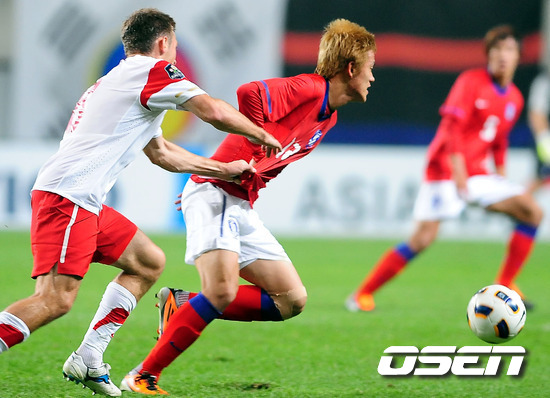 [OSEN=서울월드컵경기장 ,백승철 인턴기자] 조광래 감독이 이끄는 월드컵 축구대표팀이 7일 오후 서울월드컵경기장에서 폴란드와 평가전을 가졌다. 전반 홍철이 폴란드 수비에 옷을 붙잡히고 있다. 조광래 감독은 이번 소집 명단에서 다시 한 번 변화를 꾀했다. 논란 속에서 이동국을 추가발탁하고 서정진 이승기 이현승 등을 새롭게 발굴한 것. 여기에 곽태휘와 조병국을 발탁해 수비의 안정을 꾀했다. 잦은 부상으로 대표팀과 인연이 멀어졌던 손흥민의 복귀도 눈에 띈다. 발목을 다쳐 지난 3차 예선 1~2차전에 합류하지 못했던 손흥민은 최근 부상에서 회복하며 다시 조광래 감독의 부름을 받았다. 한편 성남 복귀전에서 부상을 당한 김정우는 제외됐다. 전날 열린 기자회견에서 조광래 감독은 원톱 공격수로 이동국을 좌우 측면에 지동원(선덜랜드)와 박주영(아스날)을 기용하겠다고 말했다. 이들의 포지션 변화도 고무적이다. 최전방에서 활약하며 움직임을 보였던 선수들에게 새로운 기회를 주겠다는 의미다. 조광래호는 오는 11일 월드컵 아시아지역 3차예선 아랍에미리트연합(UAE)과의 경기를 앞두고 최고참 이동국의 존재는 대표팀의 분위기를 바꿀 수 있을지 귀추가 주목된다. / baik@osen.co.kr