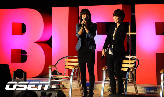 7일 오후 부산 해운대 피프빌리지에서 진행된 영화 '복숭아 나무(구혜선 감독) 야외 무대인사에서 남상미가 소감을 말하고 있다. 이날 행사에는 남상미와 구혜선 감독이 참석해 팬들과 소통의 시간을 가졌다. 제16회 부산국제영화제(BIFF) 한국영화의 오늘-비전’ 부분에 출품된 영화 '복숭아나무'는 샴 쌍둥이의 동화적인 판타지를 담고 있다. 한편 아시아 최대 영화제로 떠오른 부산국제영화제는 지난 6일 부산 영화의전당 야외극장에서 화려한 개막식을 시작으로 9일 간의 대장정을 돌입했다./ soul1014@osen.co.kr.