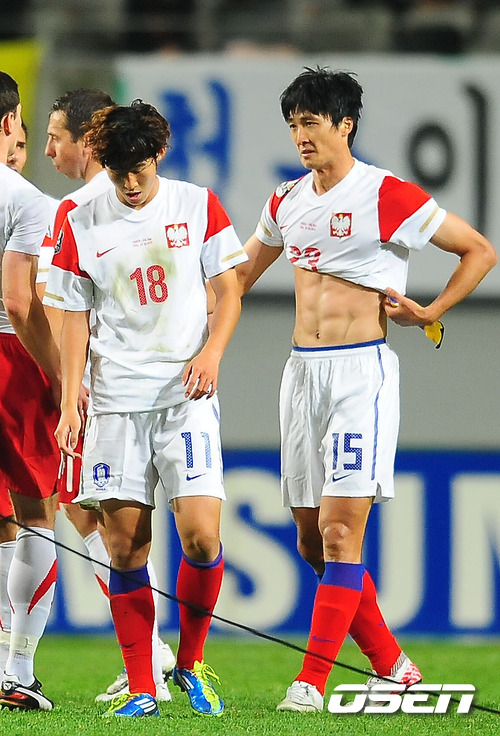 조광래 감독이 이끄는 월드컵 축구대표팀이 7일 오후 서울월드컵경기장에서 폴란드와의 친선 경기에서 박주영이 2골을 넣으며 역전했지만 후반 38분 동점골을 내주며 2-2로 비겼다. 경기를 마치고 손흥민과 곽태휘가 폴란드 선수들과 유니폼을 바꿔입고 있다. 이로써 쿠웨이트와의 2014 브라질월드컵 3차 예선서 1-1을 기록한 한국은 두 경기 연속 무승에 그쳤다. 한국은 폴란드와의 역대 전적서는 1승 1패를 기록했다. 2014 브라질 월드컵 3차 예선서 1승 1패를 기록 중인 한국은 오는 11일 수원월드컵경기장서 아랍에미리트연합(UAE)과 3차전을 갖는다. 한국은 경기 초반부터 폴란드의 강한 압박에 고전하며 미드필드서 전방으로 공을 연결하지 못했다. 세트 피스를 통해 첫번째 기회를 잡았다. / rumi@osen.co.kr