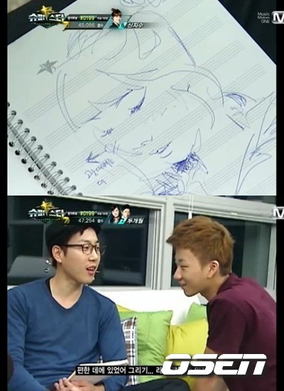 버스커버스터의 장범준이 투개월의 김예림을 몰래 스케치하다 발각됐다. 7일 생방송된 엠넷 '슈퍼스타K3'에는 지난 일주일동안 톱9의 도전자들이 숙소생활을 하며 외국인 노동자를 위한 노래를 부르는 미션을 진행하는 모습이 담겼다. 이에 밴드 버스커버스커와 투개월은 한 팀이 돼 미션을 진행했다. 버스커버스커와 투개월은 머리를 맞대고 어떤 노래를 부르면 좋을지 고민했다. 한참 회의를 하던 중 혼자만 종이에 무언가를 그리던 장범준은 멤버들에게서 지적을 받았다. 당황한 장범준은 황급히 종이를 가렸지만 이는 멤버들의 손에 넘어간 뒤였다. 종이에는 회의를 진행하고 있던 김예림의 얼굴이 그려져있었다. 장범준은 "그리기 좋은 위치에 예림이가 있었을 뿐이다"라며 변명했다. 이어 장소를 옮겨 회의를 진행하던 김예림은 장범준에게 "프로포즈 해봤느냐"고 물었고 장범준은 손가락을 헤아려가며 "세번 정도 된다"고 답했다. 이에 김예림은 표정이 굳으며 "바람둥이 아니냐"며 볼멘소리를 내 김예림과 장범준간의 러브라인을 더욱 뚜렷하게 했다. 한편 ‘슈퍼스타K 3’는 7일까지 서울 상암동 CJ E&M센터에서 진행되고 다음 주부터는 서울 회기동 경희대학교 평화의 전당에서 열린다. 또 총 상금 5억 원의 주인공이 될 우승자는 11월 11일 잠실 실내체육관에서 펼쳐지는 마지막 생방송 무대를 통해 탄생한다. goodhmh@osen.co.kr ☞ hoppin 동영상 바로보기 '슈퍼스타K3' 화면 캡처.