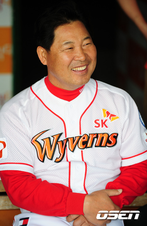 '2011 롯데카드 프로야구' SK 와이번스와 KIA 타이거즈의 준플레이오프 1차전이 8일 문학야구장에서 열릴 예정인 가운데 양팀이 훈련시간을 가졌다. SK 이만수 감독 대행이 덕아웃에서 환하게 미소짓고 있다. 한국의 좌,우를 대표하는 두 에이스인 김광현(23·SK)과 윤석민(25·KIA)이 준플레이오프 1차전부터 격돌한다. 두 선수가 포스트시즌에서 맞붙는 것은 이번이 처음. SK는 시즌 종반 김성근 전 감독의 사퇴로 내홍을 앓았고, KIA는 시즌 중반 1위에서 4위로 떨어지는 심각한 성적 하락을 겪었다. 한편 프로야구 준플레이오프 5전 3선승제로 진행된다. 8~9일 인천 문학구장에서 2연전이 열리고 하루를 쉰 뒤 11~12일 광주구장에서 3, 4차전이 이어진다. 4차전까지 승부를 가리지 못하면 14일 문학구장으로 돌아와 최종전을 벌인다. / rumi@osen.co.kr