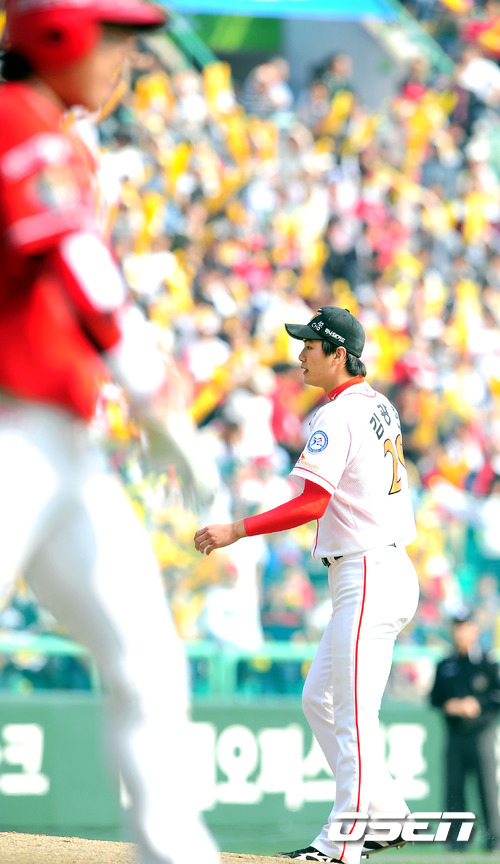 '2011 롯데카드 프로야구' SK 와이번스와 KIA 타이거즈의 준플레이오프 1차전이 8일 문학야구장에서 열렸다. 1회초 SK 김광현이 KIA 이용규를 포볼로 내보내고 있다. 준플레이오프 1차전은 한국의 좌,우를 대표하는 두 에이스인 김광현(23·SK)과 윤석민(25·KIA)이 선발로 나와 빅매치를 벌인다. 두 선수는 포스트시즌에서는 처음으로 맞대결을 벌인다. SK는 시즌 종반 김성근 전 감독의 사퇴로 내홍을 앓았고, KIA는 시즌 중반 1위에서 4위로 떨어지는 심각한 성적 하락을 겪었다. 프로야구 준플레이오프는 5전 3선승제로 진행, 8~9일 인천 문학구장에서 2연전이 열리고 하루를 쉰 뒤 11~12일 광주구장에서 3, 4차전이 이어진다. 4차전까지 승부를 가리지 못하면 14일 문학구장으로 돌아와 최종전을 벌인다. / spjj@osen.co.kr