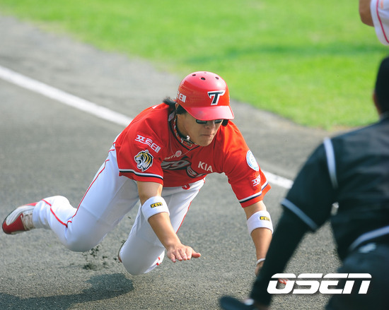 '2011 롯데카드 프로야구' SK 와이번스와 KIA 타이거즈의 준플레이오프 1차전이 8일 오후 문학야구장에서 열렸다. 1회초 1사 주자 1루 KIA 이범호의 좌익수 왼쪽 2루타때 김선빈이 홈으로 몸을 날리고 있다. 한국의 좌,우를 대표하는 두 에이스인 김광현(23·SK)과 윤석민(25·KIA)이 준플레이오프 1차전부터 격돌한다. 두 선수가 포스트시즌에서 맞붙는 것은 이번이 처음. SK는 시즌 종반 김성근 전 감독의 사퇴로 내홍을 앓았고, KIA는 시즌 중반 1위에서 4위로 떨어지는 심각한 성적 하락을 겪었다. 한편 프로야구 준플레이오프 5전 3선승제로 진행된다. 8~9일 인천 문학구장에서 2연전이 열리고 하루를 쉰 뒤 11~12일 광주구장에서 3, 4차전이 이어진다. 4차전까지 승부를 가리지 못하면 14일 문학구장으로 돌아와 최종전을 벌인다. / rumi@osen.co.kr