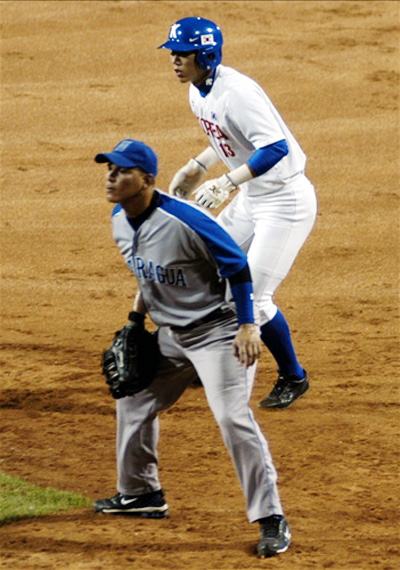 야구월드컵 대표팀이 예선라운드 5차전에서 니카라과를 6-4로 제압했다. 천보성(한양대) 감독이 이끄는 야구대표팀은 8일(한국시간) 파나마 오마 토리호스 구장에서 제39회 야구월드컵 예선라운드 5차전 니카라과와 경기에서 6-3으로 이겼다. 박종훈(SK 와이번스)을 선발로 내세운 대표팀은 1회 만루 위기에 처한 뒤 5번 기도의 1루 땅볼로 1점을 허용했다. 반격에 나선 대표팀은 1회 1번 타자 최주환(상무)의 우월 솔로 홈런으로 1-1로 균형을 맞춘 뒤 4회 최주환이 2사 1, 2루에서 좌익수 키를 넘기는 주자 일소 2루타를 때려 3-1로 승기를 잡았다. 니카라과는 5회 브리톤이 우전 안타로 출루한 뒤 2루 도루 때 포수 악송구까지 겹쳐 3루까지 안착했다. 그리고 칼데론의 2루 땅볼로 2-3으로 턱밑 추격했다. 대표팀은 7회 최성훈(경희대)의 침착한 투구에도 불구하고 내야 안타와 연속 볼넷으로 2아웃 주자 만루 위기에 처했고 3번째 투수 윤명준(고려대)이 마운드에 올라 대량 실점의 위기를 넘겼다. 그리고 8회 2사 1, 2루 찬스에서 허경민(경찰청)의 1타점 중전 안타와 대타 백상원(상무)의 내야 안타로 2점을 추가하며 6-2로 점수차를 벌렸다. 한국은 9회 윤지웅(넥센 히어로즈)을 마무리로 마운드에 올렸으나 연속 볼넷을 허용, 문승원(고려대)으로 교체했다. 하지만 문승원이 다시 볼넷을 허용, 무사 만루의 위기를 맞았으나 후속타자를 희생플라이와 땅볼 아웃으로 2점만 허용하며 6-4로 경기를 마무리지었다. what@osen.co.kr IBAF 홈페이지.
