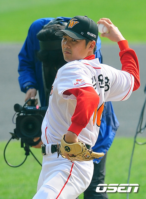 '2011 롯데카드 프로야구' SK 와이번스와 KIA 타이거즈의 준플레이오프 1차전이 8일 오후 문학야구장에서 열렸다. 경기 전 올시즌으로 은퇴하는 SK 김원형이 시구를 하고 있다. 한국의 좌,우를 대표하는 두 에이스인 김광현(23·SK)과 윤석민(25·KIA)이 준플레이오프 1차전부터 격돌한다. 두 선수가 포스트시즌에서 맞붙는 것은 이번이 처음. SK는 시즌 종반 김성근 전 감독의 사퇴로 내홍을 앓았고, KIA는 시즌 중반 1위에서 4위로 떨어지는 심각한 성적 하락을 겪었다. 한편 프로야구 준플레이오프 5전 3선승제로 진행된다. 8~9일 인천 문학구장에서 2연전이 열리고 하루를 쉰 뒤 11~12일 광주구장에서 3, 4차전이 이어진다. 4차전까지 승부를 가리지 못하면 14일 문학구장으로 돌아와 최종전을 벌인다. / rumi@osen.co.kr