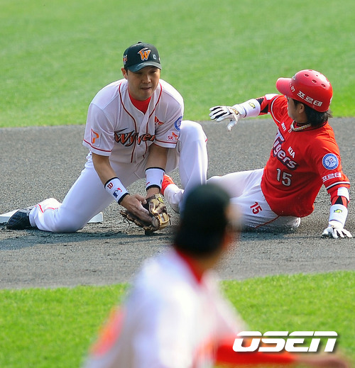 '2011 롯데카드 프로야구' SK 와이번스와 KIA 타이거즈의 준플레이오프 1차전이 8일 오후 문학야구장에서 열렸다. 1회초 무사 주자 1루 KIA 김선빈의 투수앞 땅볼을 SK 선발 김광현이 잡아 2루로 송구, 2루에서 이용규가 포스아웃 당하고 있다. 한국의 좌,우를 대표하는 두 에이스인 김광현(23·SK)과 윤석민(25·KIA)이 준플레이오프 1차전부터 격돌한다. 두 선수가 포스트시즌에서 맞붙는 것은 이번이 처음. SK는 시즌 종반 김성근 전 감독의 사퇴로 내홍을 앓았고, KIA는 시즌 중반 1위에서 4위로 떨어지는 심각한 성적 하락을 겪었다. 한편 프로야구 준플레이오프 5전 3선승제로 진행된다. 8~9일 인천 문학구장에서 2연전이 열리고 하루를 쉰 뒤 11~12일 광주구장에서 3, 4차전이 이어진다. 4차전까지 승부를 가리지 못하면 14일 문학구장으로 돌아와 최종전을 벌인다. / rumi@osen.co.kr