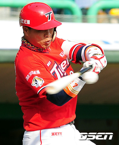 '2011 롯데카드 프로야구' SK 와이번스와 KIA 타이거즈의 준플레이오프 1차전이 8일 문학야구장에서 열렸다. 4회초 선두타자로 나온 KIA 김상현이 높은 볼을 쳐 안타를 만들고 있다. 준플레이오프 1차전은 한국의 좌,우를 대표하는 두 에이스인 김광현(23·SK)과 윤석민(25·KIA)이 선발로 나와 빅매치를 벌인다. 두 선수는 포스트시즌에서는 처음으로 맞대결을 벌인다. SK는 시즌 종반 김성근 전 감독의 사퇴로 내홍을 앓았고, KIA는 시즌 중반 1위에서 4위로 떨어지는 심각한 성적 하락을 겪었다. 프로야구 준플레이오프는 5전 3선승제로 진행, 8~9일 인천 문학구장에서 2연전이 열리고 하루를 쉰 뒤 11~12일 광주구장에서 3, 4차전이 이어진다. 4차전까지 승부를 가리지 못하면 14일 문학구장으로 돌아와 최종전을 벌인다. / spjj@osen.co.kr