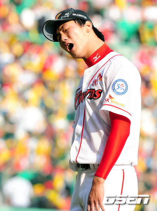 준플레이오프 1차전 에이스 맞대결에서 먼저 등을 돌린 쪽은 김광현이었다. 김광현은 8일 문학구장에서 벌어진 '2011 롯데카드 프로야구' 준플레이오프 1차전 KIA 타이거즈와의 경기에 선발 출장해 4⅔이닝 4피안타 3볼넷 1실점을 기록하고 마운드에서 내려갔다. 투구수는 88개(스트라이크 52개, 볼 36개)를 기록했다. 위력적인 구위는 여전했으나 김광현은 제구에 불안정함을 노출해 투구수 관리에 실패했다. 2회까지 투구수는 29개였으나 3회에만 30개의 투구수를 기록했다. 결국 3이닝동안 60개 가까운 공을 던졌고 결국 5회 2사 후 투구수 90개에 육박하자 마운드에서 내려와야 했다.. 김광현은 1회 수비의 도움으로 실점 위기를 넘겼다. 첫 타자 이용규를 상대로 초구 스트라이크를 잡은 뒤 연속 볼 4개로 출루를 허용한 김광현은 2번 김선빈의 번트 때 선행 주자를 2루에서 잡아냈다. 이어 이범호에 좌익선상 2루타를 얻어 맞았고 좌익수 박재상이 공을 더듬는 사이 1루 주자 김선빈이 홈까지 파고들었지만 홈에서 잡아내는 데 성공했다. 이어진 2사 2루에서 김광현은 나지완을 내야 땅볼로 잡아내 무실점으로 1회를 마쳤다. 2회를 삼자범퇴로 마무리한 김광현은 3회 선취점을 허용했다. 선두타자 차일목의 안타 이후 김광현은 박기남의 번트 때 또 다시 선행주자를 2루에서 잡아냈다. 하지만 이용규에게 또 다시 볼넷을 내준 뒤 폭투까지 범해 1사 2,3루 위기를 맞았다. 여기서 김선빈에 우익수 희생플라이를 허용해 결국 3루 주자가 홈을 밟았다. 이어진 2사 2루 위기에서 SK 벤치에서는 이범호를 고의4구로 내보냈고 결국 김광현은 나지완을 유격수 땅볼로 잡아냈다. 어렵게 3회를 넘긴 여파인지 김광현은 4회 김상현과 안치홍에 연속 안타를 내주며 무사 1,2루에 몰렸다. 위기의 순간 김광현은 최희섭을 만났다. 최희섭은 김광현에 통산 16타수 1안타로 천적 관계. 그리고 통계 그대로 김광현은 최희섭에 2루 땅볼을 유도, 병살타를 유도하는 데 성공했다. 이어 차일목을 1루수 파울플라이로 잡아내 무실점으로 위기를 넘겼다. 결국 김광현은 5회를 마치지 못했다. 박기남과 이용규를 모두 내야 땅볼로 잡아낸 뒤 마운드를 정대현에게 넘겼다. 4⅔이닝 4피안타 1실점, 분명 나쁜 투구내용은 아니었지만 '에이스'의 등판이었기에 아쉬움이 남는 강판이었다. 경기는 5회초 현재 김선빈의 희생플라이에 힘입은 원정팀 KIA가 SK에 1-0으로 앞서있다. cleanupp@osen.co.kr 인천=손용호 기자, spjj@osen.co.kr
