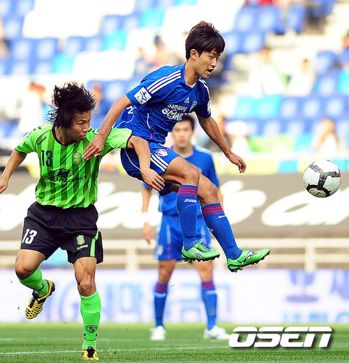 [OSEN=수원월드컵경기장 ,백승철 인턴기자] 8일 오후 수원 월드컵경기장에서 열린 '현대오일뱅크 K리그 2011' 28라운드 수원 삼성과 전북 현대의 경기 전반 수원 이상호와 전북 정훈이 공중볼 다툼을 하고 있다. 이번 주는 A매치 주간이라 프로축구 경기가 열리지 않게 돼 있었으나 수원과 성남 일화가 15일 FA컵 결승을 치러야 하기 때문에 16일로 예정됐던 경기가 앞당겨 졌다. 전북은 '라이언킹' 이동국과 서정진, 황보원(중국)이, 수원은 중원의 핵심인 이용래와 든든한 문지기 정성룡, 용병 게인리히(우즈베키스탄)가 빠져 양팀은 이들의 공백을 메워야 하는 부담감을 안은 채 경기가 치뤄졌다. / baik@osen.co.kr