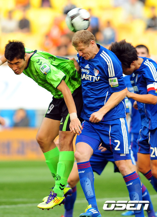 [OSEN=수원월드컵경기장 ,백승철 인턴기자] 8일 오후 수원 월드컵경기장에서 열린 '현대오일뱅크 K리그 2011' 28라운드 수원 삼성과 전북 현대의 경기 후반 수원 마토와 전북 정성훈이 볼다툼을 하고 있다. 이번 주는 A매치 주간이라 프로축구 경기가 열리지 않게 돼 있었으나 수원과 성남 일화가 15일 FA컵 결승을 치러야 하기 때문에 16일로 예정됐던 경기가 앞당겨 졌다. 전북은 '라이언킹' 이동국과 서정진, 황보원(중국)이, 수원은 중원의 핵심인 이용래와 든든한 문지기 정성룡, 용병 게인리히(우즈베키스탄)가 빠져 양팀은 이들의 공백을 메워야 하는 부담감을 안은 채 경기가 치뤄졌다. / baik@osen.co.kr