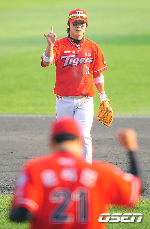 '2011 롯데카드 프로야구' SK 와이번스와 KIA 타이거즈의 준플레이오프 1차전이 8일 문학야구장에서 열렸다. 7회말 무사 주자 1루 SK 최정의 3루수 번트 병살타때 유격수 김선빈이 2루에서 박재상을 포스아웃 시킨 후 1루로 송구한 후 사인을 보내고 있다. SK 김광현이 5회초 2사 주자 없는 상황에서 강판당하며 아쉬운 표정을 짓고 있다. 한국의 좌,우를 대표하는 두 에이스인 김광현(23·SK)과 윤석민(25·KIA)이 준플레이오프 1차전부터 격돌한다. 두 선수가 포스트시즌에서 맞붙는 것은 이번이 처음. SK는 시즌 종반 김성근 전 감독의 사퇴로 내홍을 앓았고, KIA는 시즌 중반 1위에서 4위로 떨어지는 심각한 성적 하락을 겪었다. 한편 프로야구 준플레이오프 5전 3선승제로 진행된다. 8~9일 인천 문학구장에서 2연전이 열리고 하루를 쉰 뒤 11~12일 광주구장에서 3, 4차전이 이어진다. 4차전까지 승부를 가리지 못하면 14일 문학구장으로 돌아와 최종전을 벌인다. / rumi@osen.co.kr