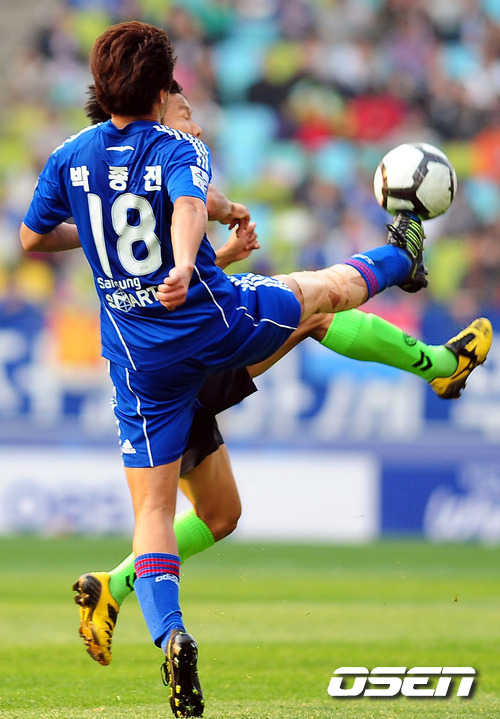 [OSEN=수원월드컵경기장 ,백승철 인턴기자] 8일 오후 수원 월드컵경기장에서 열린 '현대오일뱅크 K리그 2011' 28라운드 수원 삼성과 전북 현대의 경기 후반 수원 박종진이 볼 다툼을 벌이고 있다. 이번 주는 A매치 주간이라 프로축구 경기가 열리지 않게 돼 있었으나 수원과 성남 일화가 15일 FA컵 결승을 치러야 하기 때문에 16일로 예정됐던 경기가 앞당겨 졌다. 전북은 '라이언킹' 이동국과 서정진, 황보원(중국)이, 수원은 중원의 핵심인 이용래와 든든한 문지기 정성룡, 용병 게인리히(우즈베키스탄)가 빠져 양팀은 이들의 공백을 메워야 하는 부담감을 안은 채 경기가 치뤄졌다. / baik@osen.co.kr