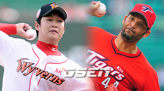 '최대한 많은 이닝을 소화하라.' 9일 문학구장에서 열리는 SK와 KIA의 준플레이오프 2차전에서 맞대결 하는 선발 투수는 송은범(27, SK)과 로페즈(36, KIA)로 결정됐다. 3선승제의 준플레이오프 1차전을 내줘 쫓기는 입장이 된 SK로서는 2차전을 반드시 승리로 이끌어야 한다. 그런 만큼 송은범의 피칭에 기대를 걸어야 한다. 송은범은 올 시즌 38경기(선발 11경기)8승8패 1세이브 4홀드 평균자책점은 3.43을 기록했다. 시즌 전만 해도 선발 보직을 받았던 송은범이었다. 그러나 지난 7월부터 불펜으로 돌아섰다. 팔꿈치 통증이 심해져 긴 이닝을 소화할 수 없기 때문이었다. 포스트시즌을 앞둔 지난달 30일 문학 삼성전을 통해 다시 선발로 돌아서야 했던 송은범이다. 김광현, 고든 외에는 이렇다할 선발진이 없는 팀 사정 때문이었다. 송은범은 KIA를 상대로 나쁘지 않았다. 올해 4경기에서 승리없이 3패1세이브를 기록했지만 2.38의 평균자책점으로 제 몫을 확실히 해냈다. 문제는 투구수다. 삼성전에서도 무실점했지만 3이닝만 소화할 수 있었다. 투구수가 50개 정도로 제한됐기 때문이다. 팔꿈치 통증에서 자유로울 수 없는 만큼 최대한 적은 투구로 많은 이닝을 소화해야 할 필요가 있다. 이에 맞서는 로페즈 역시 썩 좋은 컨디션은 아니다. 로페즈는 올해 26경기(선발 24경기)에서 11승9패 1세이브 평균자책점 3.98의 시즌 성적을 남겼다. 전반기에만 10승을 찍을 만큼 최고의 컨디션을 보인 로페즈였다. 무엇보다 이닝 소화력에서 탁월한 능력을 보여줘 가장 믿음직한 에이스로 각광받았다. 하지만 옆구리 통증을 호소하면서 후반기 부진이 계속됐다. 지난 7월 10일 잠실 LG전에서 10승을 채웠지만 이후 등판한 9경기에서 난타를 당하는 경기가 많았다. 이 사이 성적은 1승6패. 따라서 이번 포스트시즌에서 로페즈의 활용이 궁금증이 컸다. 7일 미디어데이서도 조범현 감독은 "그 때 상황에 따라 기용하겠다"고 확실한 답을 내놓지 않았지만 선발 투수가 답이었다. 로페즈 역시 얼마나 오래 마운드에 서 있을 수 있느냐가 관건이 될 전망이다. 로페즈는 SK를 상대로 강했다. 올 시즌 5경기에서 1승2패 평균자책점 2.79를 기록했다. 그나마 컨디션이 좋지 않았던 1승이 바로 SK전이었다. 비록 선발이 아니었지만 4이닝을 무실점으로 막아냈다. 결국 송은범과 로페즈의 선발 싸움은 얼마나 많은 이닝을 소화해서 팀에게 이길 수 있는 기회를 제공하느냐가 될 전망이다. 로페즈는 1차전에서 윤석민의 완투승으로 인해 상대적인 부담을 덜 수 있게 됐다. 둘은 아직 선발 맞대결을 펼친 적이 없다. letmeout@osen.co.kr