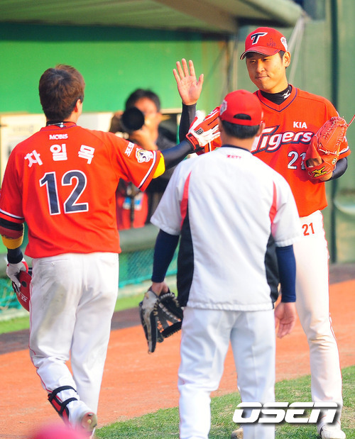 '2011 롯데카드 프로야구' SK 와이번스와 KIA 타이거즈의 준플레이오프 1차전이 8일 문학야구장에서 열렸다. 9회초 2사 주자 만루 KIA 차일목이 좌월 만루 홈런을 날린 후 덕아웃에서 KIA 선발 윤석민과 하이파이브를 하고 있다. 한국의 좌,우를 대표하는 두 에이스인 김광현(23·SK)과 윤석민(25·KIA)이 준플레이오프 1차전부터 격돌한다. 두 선수가 포스트시즌에서 맞붙는 것은 이번이 처음. SK는 시즌 종반 김성근 전 감독의 사퇴로 내홍을 앓았고, KIA는 시즌 중반 1위에서 4위로 떨어지는 심각한 성적 하락을 겪었다. 한편 프로야구 준플레이오프 5전 3선승제로 진행된다. 8~9일 인천 문학구장에서 2연전이 열리고 하루를 쉰 뒤 11~12일 광주구장에서 3, 4차전이 이어진다. 4차전까지 승부를 가리지 못하면 14일 문학구장으로 돌아와 최종전을 벌인다. / rumi@osen.co.kr