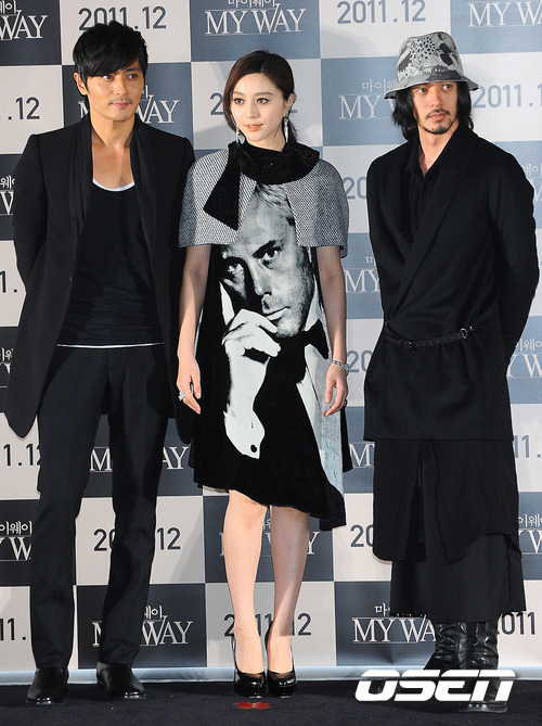 8일 오후 부산 해운대 신세계백화점 내 CGV 스타리움에서 열린 영화 '마이웨이'(감독 강제규) 제작보고회에서 출연배우들이 포즈를 취하고 있다. 영화 '마이웨이'는 적으로 만난 조선과 일본의 두 청년이 2차 세계대전의 거대한 소용돌이 속에서 서로의 희망이 되어가는 과정을 그리고 있다. 또한 '마이웨이'는 2차 세계대전을 배경으로 한 웅장한 스케일 뿐만 아니라 배우 장동건, 오다기리 조, 판빙빙 등 한·중·일을 대표하는 세 배우의 만남과 '태극기 휘날리며' 이후 7년 만에 돌아온 강제규 감독의 귀환등으로 주목을 받았다. 한편 아시아 최대 영화제로 떠오른 부산국제영화제는 지난 6일 부산 영화의전당 야외극장에서 화려한 개막식을 시작으로 9일 간의 대장정을 돌입했다./ soul1014@osen.co.kr