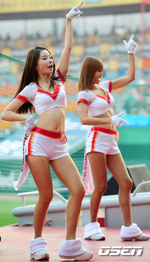 '2011 롯데카드 프로야구' SK 와이번스와 KIA 타이거즈의 준플레이오프 1차전이 8일 문학야구장에서 열렸다. 이 날 경기에서 KIA는 윤석민의 1실점 압권의 호투와 차일목의 만루포에 힘입어 5-1로 SK에 승리를 거뒀다. SK 치어리더들이 단상 위에서 화려한 공연을 펼치고 있다. 윤석민은 9이닝 동안 3피안타(1홈런) 3탈삼진 2사사구 1실점 쾌투를 펼치며 완투승을 거뒀다. 팀은 9회 차일목의 쐐기 만루홈런으로 1차전 승리를 가져가면서 플레이오프 진출을 위한 고지에 한 걸음 다가섰다. / rumi@osen.co.kr
