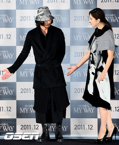 8일 오후 부산 해운대 신세계백화점 내 CGV 스타리움에서 열린 영화 '마이웨이'(감독 강제규) 제작보고회에서 오다가리 죠가 판빙빙의 자리를 배려하고 있다. 영화 '마이웨이'는 적으로 만난 조선과 일본의 두 청년이 2차 세계대전의 거대한 소용돌이 속에서 서로의 희망이 되어가는 과정을 그리고 있다. 또한 '마이웨이'는 2차 세계대전을 배경으로 한 웅장한 스케일 뿐만 아니라 배우 장동건, 오다기리 조, 판빙빙 등 한·중·일을 대표하는 세 배우의 만남과 '태극기 휘날리며' 이후 7년 만에 돌아온 강제규 감독의 귀환등으로 주목을 받았다. 한편 아시아 최대 영화제로 떠오른 부산국제영화제는 지난 6일 부산 영화의전당 야외극장에서 화려한 개막식을 시작으로 9일 간의 대장정을 돌입했다./ soul1014@osen.co.kr