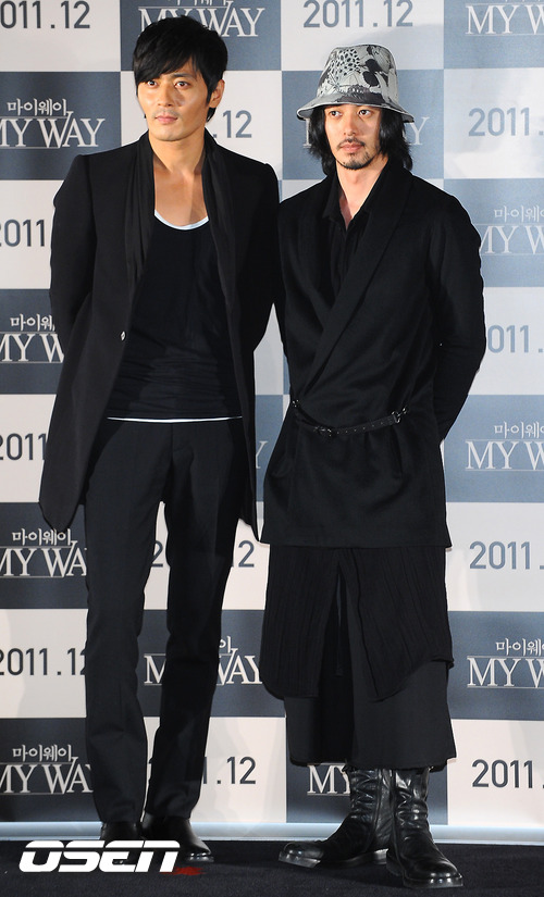 8일 오후 부산 해운대 신세계백화점 내 CGV 스타리움에서 열린 영화 '마이웨이'(감독 강제규) 제작보고회에서 장동건과 오다기리 죠가 포즈를 취하고 있다. 영화 '마이웨이'는 적으로 만난 조선과 일본의 두 청년이 2차 세계대전의 거대한 소용돌이 속에서 서로의 희망이 되어가는 과정을 그리고 있다. 또한 '마이웨이'는 2차 세계대전을 배경으로 한 웅장한 스케일 뿐만 아니라 배우 장동건, 오다기리 조, 판빙빙 등 한·중·일을 대표하는 세 배우의 만남과 '태극기 휘날리며' 이후 7년 만에 돌아온 강제규 감독의 귀환등으로 주목을 받았다. 한편 아시아 최대 영화제로 떠오른 부산국제영화제는 지난 6일 부산 영화의전당 야외극장에서 화려한 개막식을 시작으로 9일 간의 대장정을 돌입했다./ soul1014@osen.co.kr
