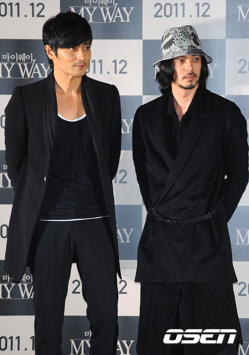 8일 오후 부산 해운대 신세계백화점 내 CGV 스타리움에서 열린 영화 '마이웨이'(감독 강제규) 제작보고회에서 장동건과 오다기리 죠가 포즈를 취하고 있다. 영화 '마이웨이'는 적으로 만난 조선과 일본의 두 청년이 2차 세계대전의 거대한 소용돌이 속에서 서로의 희망이 되어가는 과정을 그리고 있다. 또한 '마이웨이'는 2차 세계대전을 배경으로 한 웅장한 스케일 뿐만 아니라 배우 장동건, 오다기리 조, 판빙빙 등 한·중·일을 대표하는 세 배우의 만남과 '태극기 휘날리며' 이후 7년 만에 돌아온 강제규 감독의 귀환등으로 주목을 받았다. 한편 아시아 최대 영화제로 떠오른 부산국제영화제는 지난 6일 부산 영화의전당 야외극장에서 화려한 개막식을 시작으로 9일 간의 대장정을 돌입했다./ soul1014@osen.co.kr