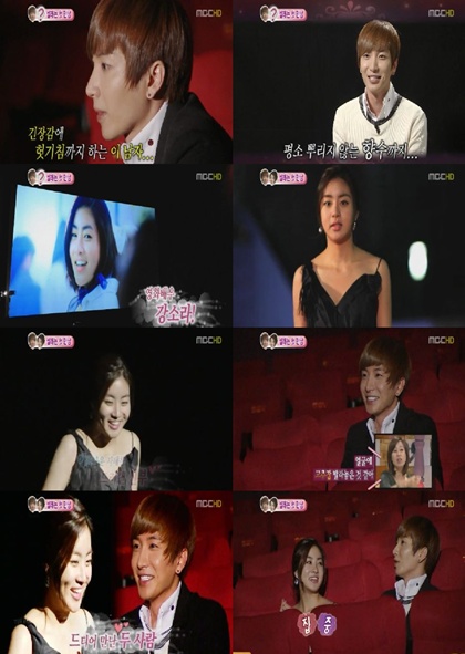 이특이 강소라와의 첫만남에서 극도로 긴장한 모습을 보여 웃음을 유발했다. 8일 방송된 MBC '우리 결혼했어요'에서 새 커플 이특과 강소라의 첫만남이 그려졌다. 치특은 강소라를 만나기전 선배들과 후배들에게 자신의 결혼을 알리며 즐거워했다. 하지만 막상 강소라와 만나는 시간이 다가오자, 이특은 이전에 한번도 보인 적 없었던 긴장한 모습을 보였다. 이특은 "오늘 이빨을 몇번 닦았는지 모르겠다. 향수도 몇번이나 뿌렸다"며 새만남에 대한 기대감을 감추지 않았다. 만나기로 했던 극장에서 강소라를 기다리면서도 손을 비비고 한숨을 쉬는 등 긴장감을 보였다. 박미선은 "이특이 저렇게 긴장하는 친구가 아닌데, 너무 긴장하고 있다"고 말했다. 이특은 강소라가 나타나자 어쩔 줄 몰라하며 인사를 몇번이나 하고 소심하게 "예쁘다"고 감탄해 웃음을 유발했다. 강소라 역시 다리를 떠는 모습을 보이며 "평소 유머러스한 남자를 좋아해 슈퍼주니어 중에서 이특씨를 가장 좋아했다"고 밝혀 이특을 기쁘게 했다. 이특은 "오기 전에 어떻게 할건지 어떤 멘트를 할건지 생각해놨는데, 강소라를 보는 순간 백지장이 됐다"고 소감을 전했다. 첫만남 전 기사를 통해 커플 사실을 알게된 두 사람은 서로에 대해 미리 조사해 와, 어색함 속에서도 서로에 대한 이야기를 나누며 화기애애한 시간을 보냈다. 이특은 "앞으로 우리, 사람들 많은 장소에 많이 가자. 우리 결혼했다고 사람들에게 알리고 싶다"고 좋아하는 마음을 표현했다. bonbon@osen.co.kr ☞ hoppin 동영상 바로보기