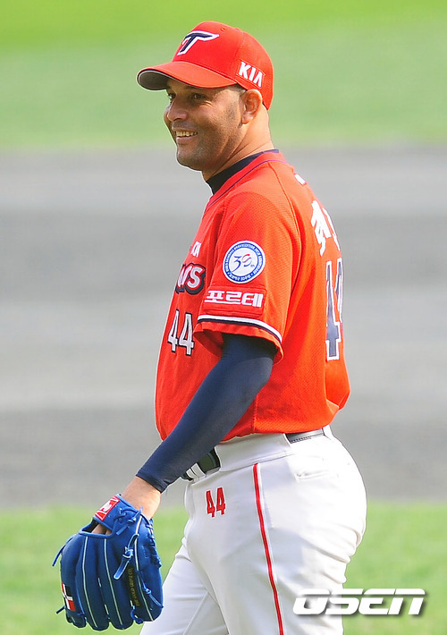 '2011 롯데카드 프로야구' SK 와이번스와 KIA 타이거즈의 준플레이오프 2차전이 9일 문학야구장에서 열렸다. 4회말을 마친 로페즈가 환하게 미소짓고 있다. 준플레이오프 2차전에서는 SK 송은범(27)과 KIA 로페즈(36)가 첫 선발 맞대결을 펼쳤다. 3선승제의 준플레이오프 1차전을 내줘 쫓기는 입장이 된 SK로서는 2차전을 반드시 승리로 이끌어야 한다. 그런 만큼 송은범의 피칭에 기대를 걸어야 한다. 그에 반해 로페즈는 1차전에서 윤석민의 완투승으로 인해 상대적인 부담을 덜 수 있게 됐다. KIA는 지난해까지 4년 중 3번의 가을 잔치서 '리버스 스윕'으로 두 번의 한국시리즈 패권을 거머쥐었고 한국시리즈행 티켓도 쥔 바 있는 SK이기에 1승을 잊고 경기에 임하겠다는 각오. 한편 SK는 시즌 종반 김성근 전 감독의 사퇴로 내홍을 앓았고, KIA는 시즌 중반 1위에서 4위로 떨어지는 심각한 성적 하락을 겪었다. 프로야구 준플레이오프 5전 3선승제로 진행된다. 8~9일 인천 문학구장에서 2연전이 열리고 하루를 쉰 뒤 11~12일 광주구장에서 3, 4차전이 이어진다. 4차전까지 승부를 가리지 못하면 14일 문학구장으로 돌아와 최종전을 벌인다. / rumi@osen.co.kr
