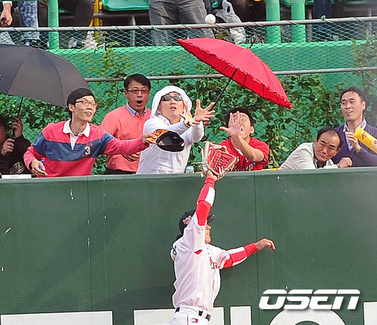 '2011 롯데카드 프로야구' SK 와이번스와 KIA 타이거즈의 준플레이오프 2차전이 9일 문학야구장에서 열렸다. 5회초 1사 최희섭의 좌월 홈런때 관중들이 포구를 하고 있다. 준플레이오프 2차전에서는 SK 송은범(27)과 KIA 로페즈(36)가 첫 선발 맞대결을 펼친다. 3선승제의 준플레이오프 1차전을 내줘 쫓기는 입장이 된 SK로서는 2차전을 반드시 승리로 이끌어야 한다. 그런 만큼 송은범의 피칭에 기대를 걸어야 한다. 그에 반해 로페즈는 1차전에서 윤석민의 완투승으로 인해 상대적인 부담을 덜 수 있게 됐다. KIA는 지난해까지 4년 중 3번의 가을 잔치서 '리버스 스윕'으로 두 번의 한국시리즈 패권을 거머쥐었고 한국시리즈행 티켓도 쥔 바 있는 SK이기에 1승을 잊고 경기에 임하겠다는 각오. 한편 SK는 시즌 종반 김성근 전 감독의 사퇴로 내홍을 앓았고, KIA는 시즌 중반 1위에서 4위로 떨어지는 심각한 성적 하락을 겪었다. 프로야구 준플레이오프 5전 3선승제로 진행된다. 8~9일 인천 문학구장에서 2연전이 열리고 하루를 쉰 뒤 11~12일 광주구장에서 3, 4차전이 이어진다. 4차전까지 승부를 가리지 못하면 14일 문학구장으로 돌아와 최종전을 벌인다. / ajyong@osen.co.kr