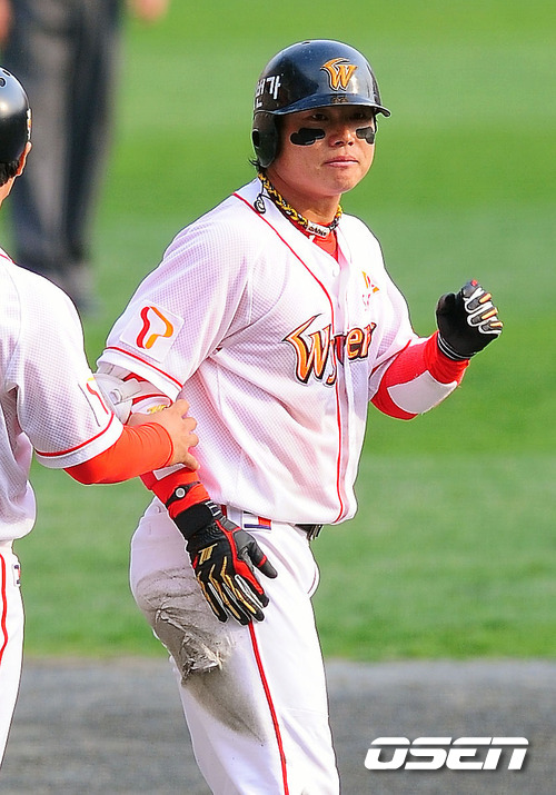 '2011 롯데카드 프로야구' SK 와이번스와 KIA 타이거즈의 준플레이오프 2차전이 9일 문학야구장에서 열렸다. 5회말 1사 주자 1루 SK 박재상이 우중간 1타점 3루타를 날린 후 3루에서 손을 올리고 있다. 준플레이오프 2차전에서는 SK 송은범(27)과 KIA 로페즈(36)가 첫 선발 맞대결을 펼쳤다. 3선승제의 준플레이오프 1차전을 내줘 쫓기는 입장이 된 SK로서는 2차전을 반드시 승리로 이끌어야 한다. 그런 만큼 송은범의 피칭에 기대를 걸어야 한다. 그에 반해 로페즈는 1차전에서 윤석민의 완투승으로 인해 상대적인 부담을 덜 수 있게 됐다. KIA는 지난해까지 4년 중 3번의 가을 잔치서 '리버스 스윕'으로 두 번의 한국시리즈 패권을 거머쥐었고 한국시리즈행 티켓도 쥔 바 있는 SK이기에 1승을 잊고 경기에 임하겠다는 각오. 한편 SK는 시즌 종반 김성근 전 감독의 사퇴로 내홍을 앓았고, KIA는 시즌 중반 1위에서 4위로 떨어지는 심각한 성적 하락을 겪었다. 프로야구 준플레이오프 5전 3선승제로 진행된다. 8~9일 인천 문학구장에서 2연전이 열리고 하루를 쉰 뒤 11~12일 광주구장에서 3, 4차전이 이어진다. 4차전까지 승부를 가리지 못하면 14일 문학구장으로 돌아와 최종전을 벌인다. / rumi@osen.co.kr