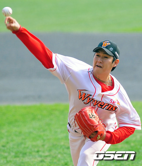예상 외로 길게 던져주며 투수전으로 이끌었다. 송은범(28,SK 와이번스)은 9일 문학구장에서 벌어진 '2011 롯데카드 프로야구' 준플레이오프 2차전에 선발 등판해 6이닝 5피안타(1피홈런) 1볼넷 5탈삼진 2실점을 기록하고 7회 마운드에서 내려갔다. 송은범의 투구수는 83개. 시즌 내내 오른쪽 팔꿈치 통증에 시달려 긴 이닝을 소화하지 못했다. 그 가운데 선발로 나서지 못하고 주로 불펜으로 경기에 나섰다. 그렇지만 송은범은 당초 예상보다 오래 마운드를 지키며 6이닝을 채운 뒤 박희수에게 마운드를 넘겼다. 1회 송은범은 선두타자 이용규에 중전안타를 허용하며 불안한 출발을 했다. 번트를 시도하던 김선빈을 삼진으로 솎아냈지만 순간 이용규가 2루를 훔쳤다. 송은범은 이범호를 7구 승부 끝에 삼진으로 돌려 세웠지만 이후 나지완에 우전 적시타를 허용해 선취점을 내줬다. 송은범은 2회와 3회에도 선두타자 출루를 허용했지만 무실점으로 막았다.2회 김상현을 안타로 내보냈지만 정상호의 도루 저지를 곁들여 범타로 후속 타자를 처리했다. 3회 역시 볼넷과 희생번트로 맞은 1사 2루에서 성공적으로 범타를 유도해 냈다. 그렇지만 송은범은 5회 최희섭에 솔로포를 허용하며 추가 실점을 했다. 1사 주자 없는 상황 볼카운트 2-2에서 던진 149km 직구가 높게 들어가 최희섭에게 통타당해 좌측 담장을 넘어가는 솔로 홈런으로 이어졌다. 6회를 삼자범퇴로 마무리했을 때 송은범의 투구 수는 83개. 오른쪽 팔꿈치 통증으로 긴 이닝을 소화하지 못할 것이라 예상했던 것을 감안하면 충분히 박수 받을만한 호투였다. cleanupp@osen.co.kr 인천=민경훈 기자,rumi@osen.co.kr