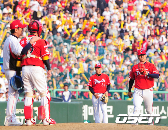 '2011 롯데카드 프로야구' SK 와이번스와 KIA 타이거즈의 준플레이오프 2차전이 9일 문학야구장에서 열렸다. 7회말 2사 1,3루 KIA 한기주가 팀 4번째 투수로 등판 하면 마운드에 오르고 있다. 3선승제의 준플레이오프 1차전을 내줘 쫓기는 입장이 된 SK로서는 2차전을 반드시 승리로 이끌어야 한다. KIA는 지난해까지 4년 중 3번의 가을 잔치서 '리버스 스윕'으로 두 번의 한국시리즈 패권을 거머쥐었고 한국시리즈행 티켓도 쥔 바 있는 SK이기에 1승을 잊고 경기에 임하겠다는 각오. 한편 SK는 시즌 종반 김성근 전 감독의 사퇴로 내홍을 앓았고, KIA는 시즌 중반 1위에서 4위로 떨어지는 심각한 성적 하락을 겪었다. 프로야구 준플레이오프 5전 3선승제로 진행된다. 8~9일 인천 문학구장에서 2연전이 열리고 하루를 쉰 뒤 11~12일 광주구장에서 3, 4차전이 이어진다. 4차전까지 승부를 가리지 못하면 14일 문학구장으로 돌아와 최종전을 벌인다. / ajyong@osen.co.kr