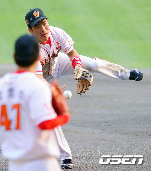 '2011 롯데카드 프로야구' SK 와이번스와 KIA 타이거즈의 준플레이오프 2차전이 9일 문학야구장에서 열렸다. 8회초 첫타석에서 KIA 이용규의 타구가 SK 박희수 투수의 글러브를 맞고 굴절된 볼을 정근우가 잡아 1루로 송구하고 있다. 준플레이오프 2차전에서는 SK 송은범(27)과 KIA 로페즈(36)가 첫 선발 맞대결을 펼쳤다. 3선승제의 준플레이오프 1차전을 내줘 쫓기는 입장이 된 SK로서는 2차전을 반드시 승리로 이끌어야 한다. 그런 만큼 송은범의 피칭에 기대를 걸어야 한다. 그에 반해 로페즈는 1차전에서 윤석민의 완투승으로 인해 상대적인 부담을 덜 수 있게 됐다. KIA는 지난해까지 4년 중 3번의 가을 잔치서 '리버스 스윕'으로 두 번의 한국시리즈 패권을 거머쥐었고 한국시리즈행 티켓도 쥔 바 있는 SK이기에 1승을 잊고 경기에 임하겠다는 각오. 한편 SK는 시즌 종반 김성근 전 감독의 사퇴로 내홍을 앓았고, KIA는 시즌 중반 1위에서 4위로 떨어지는 심각한 성적 하락을 겪었다. 프로야구 준플레이오프 5전 3선승제로 진행된다. 8~9일 인천 문학구장에서 2연전이 열리고 하루를 쉰 뒤 11~12일 광주구장에서 3, 4차전이 이어진다. 4차전까지 승부를 가리지 못하면 14일 문학구장으로 돌아와 최종전을 벌인다. / rumi@osen.co.kr