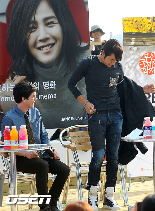 9일 오후 부산 해운대 피프빌리지에서 열린 '이스트&웨스트, 오늘의 스타가 말하는 내일의 영화' 오픈토크에서 배우 장근석이 재킷을 벗고 있다. 이날 행사에는 '너는펫'의 장근석과 '영화 '삼총사 3D'의 로건 레먼이 참석해 팬들과 즐거운 시간을 가졌다. 한편 아시아 최대 영화제로 떠오른 부산국제영화제는 지난 6일 부산 영화의전당 야외극장에서 화려한 개막식을 시작으로 9일 간의 대장정을 돌입했다./ soul1014@osen.co.kr