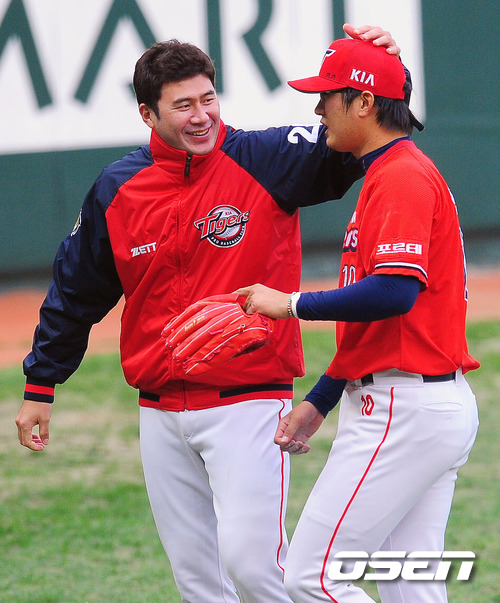 '2011 롯데카드 프로야구' SK 와이번스와 KIA 타이거즈의 준플레이오프 2차전이 9일 문학야구장에서 열렸다. 9회말을 마무리 한 한기주를 서재응이 맞이하고 있다. 3선승제의 준플레이오프 1차전을 내줘 쫓기는 입장이 된 SK로서는 2차전을 반드시 승리로 이끌어야 한다. KIA는 지난해까지 4년 중 3번의 가을 잔치서 '리버스 스윕'으로 두 번의 한국시리즈 패권을 거머쥐었고 한국시리즈행 티켓도 쥔 바 있는 SK이기에 1승을 잊고 경기에 임하겠다는 각오. 한편 SK는 시즌 종반 김성근 전 감독의 사퇴로 내홍을 앓았고, KIA는 시즌 중반 1위에서 4위로 떨어지는 심각한 성적 하락을 겪었다. 프로야구 준플레이오프 5전 3선승제로 진행된다. 8~9일 인천 문학구장에서 2연전이 열리고 하루를 쉰 뒤 11~12일 광주구장에서 3, 4차전이 이어진다. 4차전까지 승부를 가리지 못하면 14일 문학구장으로 돌아와 최종전을 벌인다. /
