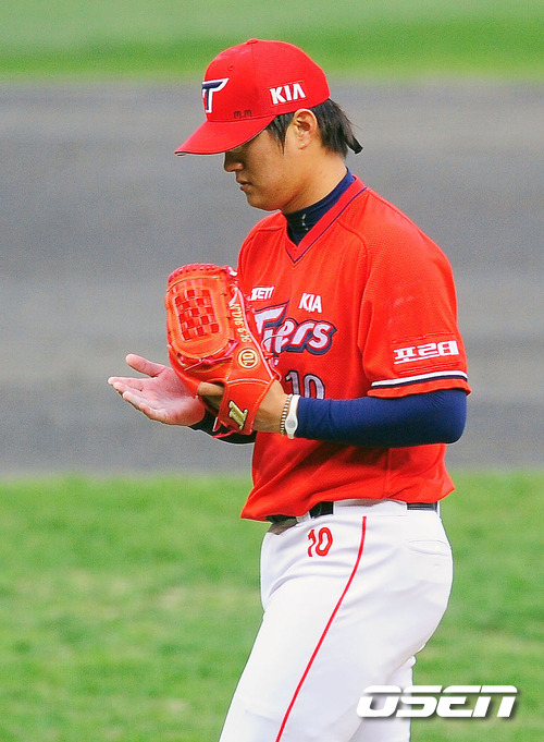 페넌트레이스 종료 직전 선발요원으로 만지작거렸던 카드. 그러나 정작 포스트시즌 첫 등판은 계투로 나섰다. 제구가 불안하기는 했으나 구위로 상대를 누르던 투수는 결국 중과부적으로 눈물흘려야 했다. KIA 타이거즈 '광속 우완' 한기주(24)는 그렇게 끝내기 패배를 떠안았다. KIA는 9일 인천 문학구장서 벌어진 SK와의 준플레이오프 2차전서 선발 요원으로 염두에 뒀던 한기주를 출격시키는 총력전을 펼쳤다. 일단 한기주에게 경기 끝을 맡기고 그 다음은 타선을 믿는다는 전략이었으나 타선의 잇단 불발로 연장 11회 이호준의 끝내기 중전 안타로 2-3 패배를 맛보았다. 손영민의 뒤를 이어 7회 2사에 마운드를 오른 한기주는 연장까지 어깨를 휘둘렀다. 총 투구수는 72(스트라이크 33개, 볼 39개)개에 4이닝 2피안타(탈삼진 1개, 사사구 5개) 1실점 패. 7회 대타 이호준을 3루 땅볼로 처리한 한기주는 8회 삼자범퇴로 SK 타선을 막았다. 그러나 9회 흔들리던 제구가 그를 위기로 이끌었다. 안치용을 볼넷으로 내보낸 뒤 정근우의 희생번트 때 주춤하며 선행주자의 진루를 막지 못한 한기주는 박재상을 볼넷으로 내보낸 뒤 최정을 삼진으로 잡아냈다. 그러나 박정권에게 볼넷을 내주며 2사 만루 위기를 자초했다. 뒤를 이은 이호준의 유격수 땅볼로 끝내기 패배 위험을 넘긴 한기주. 연장 10회말 한기주는 두 개의 뜬공과 하나의 땅볼타구로 삼자범퇴하며 공을 11회로 넘겼다. 첫 위기는 어찌어찌 넘겼으나 두 번째 고비는 넘기지 못한 한기주다. 한기주는 안치용을 볼넷으로 내보낸 뒤 정근우에게 좌전 안타를 내주며 무사 1,2루를 자초했다. 박재상의 희생번트까지 이어지며 1사 2,3루가 된 순간. 한기주는 슬럼프에 빠진 최정을 짧은 3루 땅볼로 잡고 박정권을 고의 볼넷으로 걸렀다. 그러나 이호준이 풀카운트까지 가는 끝에 중전안타를 때려내며 경기가 끝났다. 서재응을 빼고 모두 불펜 대기했던 시점에서 한기주의 구위가 가장 좋았던 만큼 KIA는 한기주에게 경기를 맡겼으나 실패로 돌아갔다. 못 던져서 야기된 실패가 아니라 타선의 후반 불발이 가져온 패전이라 더욱 아쉬웠다. farinelli@osen.co.kr 인천=민경훈 기자 rumi@osen.co.kr
