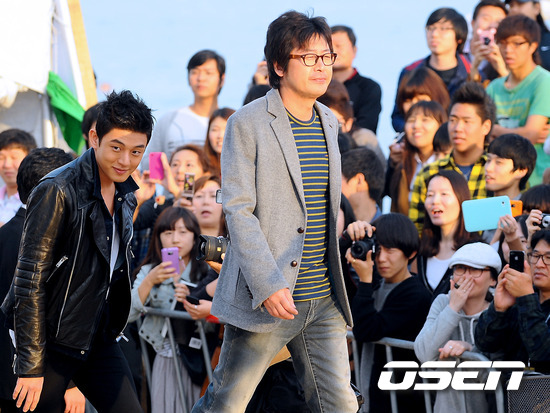 9일 오후 부산 해운대 피프빌리지에서 열린 영화 '완득이' 야외 무대인사에서 배우 유아인과 김윤석이 팬들의 환호를 받으며 입장하고 있다. 개성과 인간미 넘치는 교사 김윤석과 거칠지만 깊은 속내의 반항아 유아인의 연기 호흡이 기대되는 영화 '완득이'는 오는 20일 개봉된다. 한편 아시아 최대 영화제로 떠오른 부산국제영화제는 지난 6일 부산 영화의전당 야외극장에서 화려한 개막식을 시작으로 9일 간의 대장정을 돌입했다./ soul1014@osen.co.kr