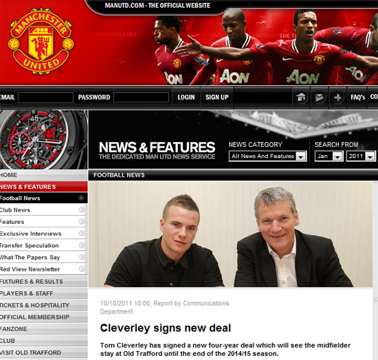 맨체스터 유나이티드(이하 맨유)가 팀의 젊은 미드필더 톰 클레벌리(22)와 재계약을 맺었다. 맨유는 10일(이하 한국시간) 공식 홈페이지를 통해 클레벌리와 계약을 새로 맺었다고 발표했다. 이에 따르면 계약 기간은 4년으로 클레버리는 2014-2015 시즌이 끝날 때까지 맨유에 남게 된다. 클레벌리는 "맨유에서 성장해가며 더 많은 팀 우승에 가능한 많은 기여를 하고 싶다. 우리 팀의 스쿼드는 대단한 능력을 갖고 있다"며 계약 소감을 밝혔다. 알렉스 퍼거슨 맨유 감독도 "클레벌리는 잉글랜드 축구를 빛나게 할 재원 중 한 명이며 좋은 축구 지능을 갖고 있다"면서 재계약에 대한 기쁨을 드러냈다. 클레벌리는 지난 시즌까지 팀에서 큰 비중을 얻지 못했다. 맨유의 유소년 팀 출신이지만 매년 임대를 다녔던 것. 그렇지만 이번 시즌 폴 스콜스 은퇴 이후 생긴 맨유의 중원 미드필더 공백을 잘 메워주며 또 하나의 스콜스가 탄생했다는 이야기를 듣고 있다. sports_narcotic@osen.co.kr 맨체스터 유나이티드 공식 홈페이지 캡처.
